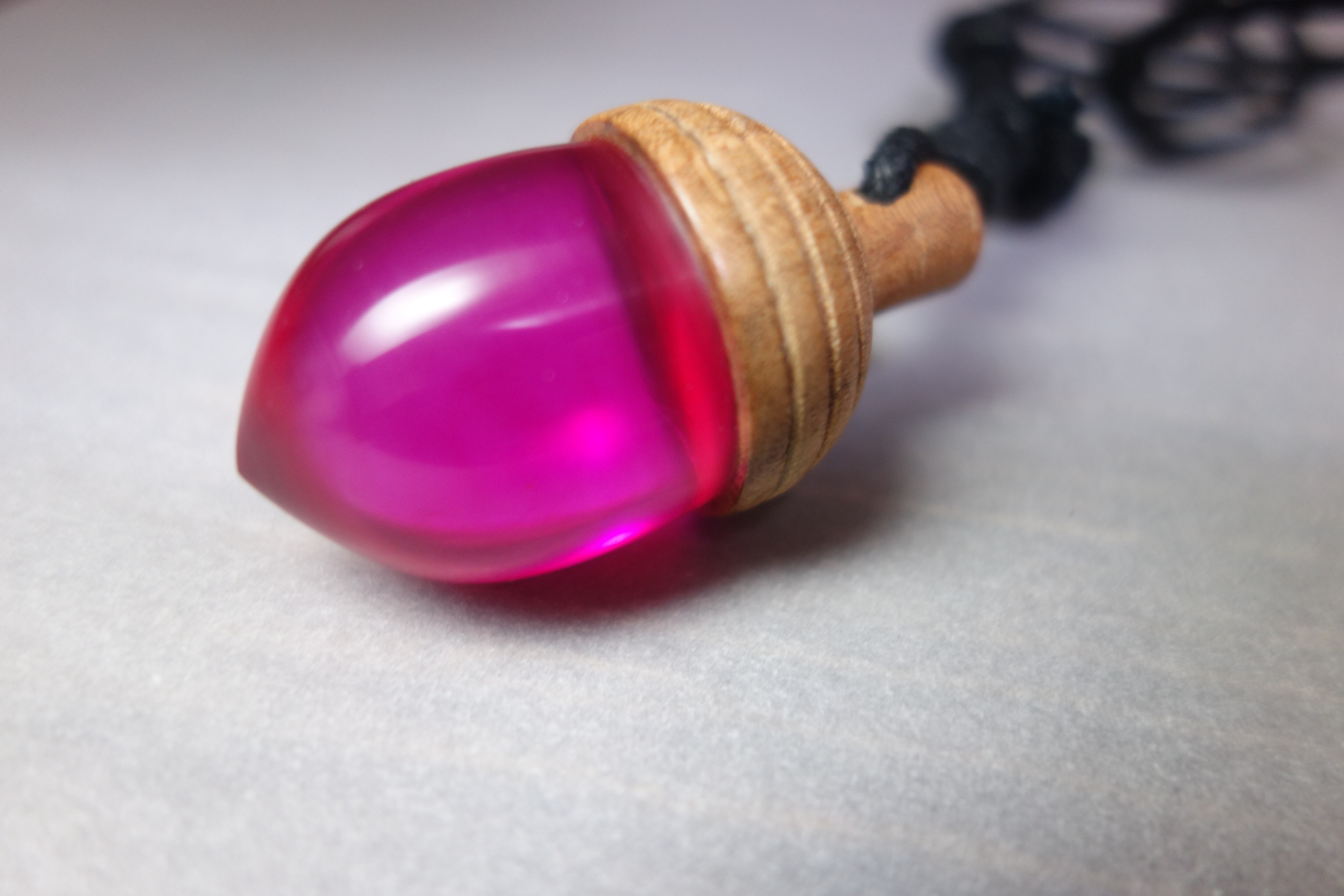 レジンと木の組合せで作ったドングリ型のペンダントになります